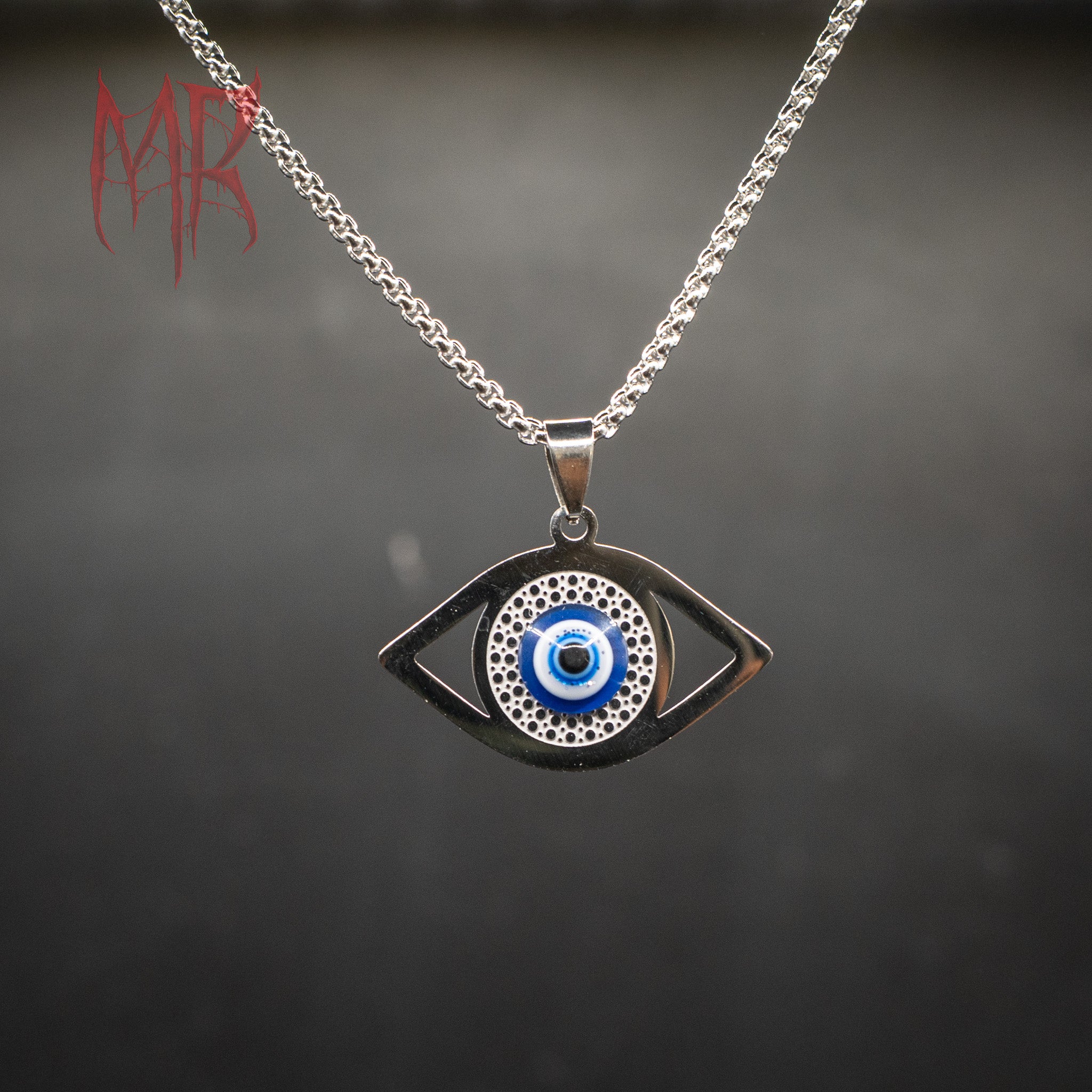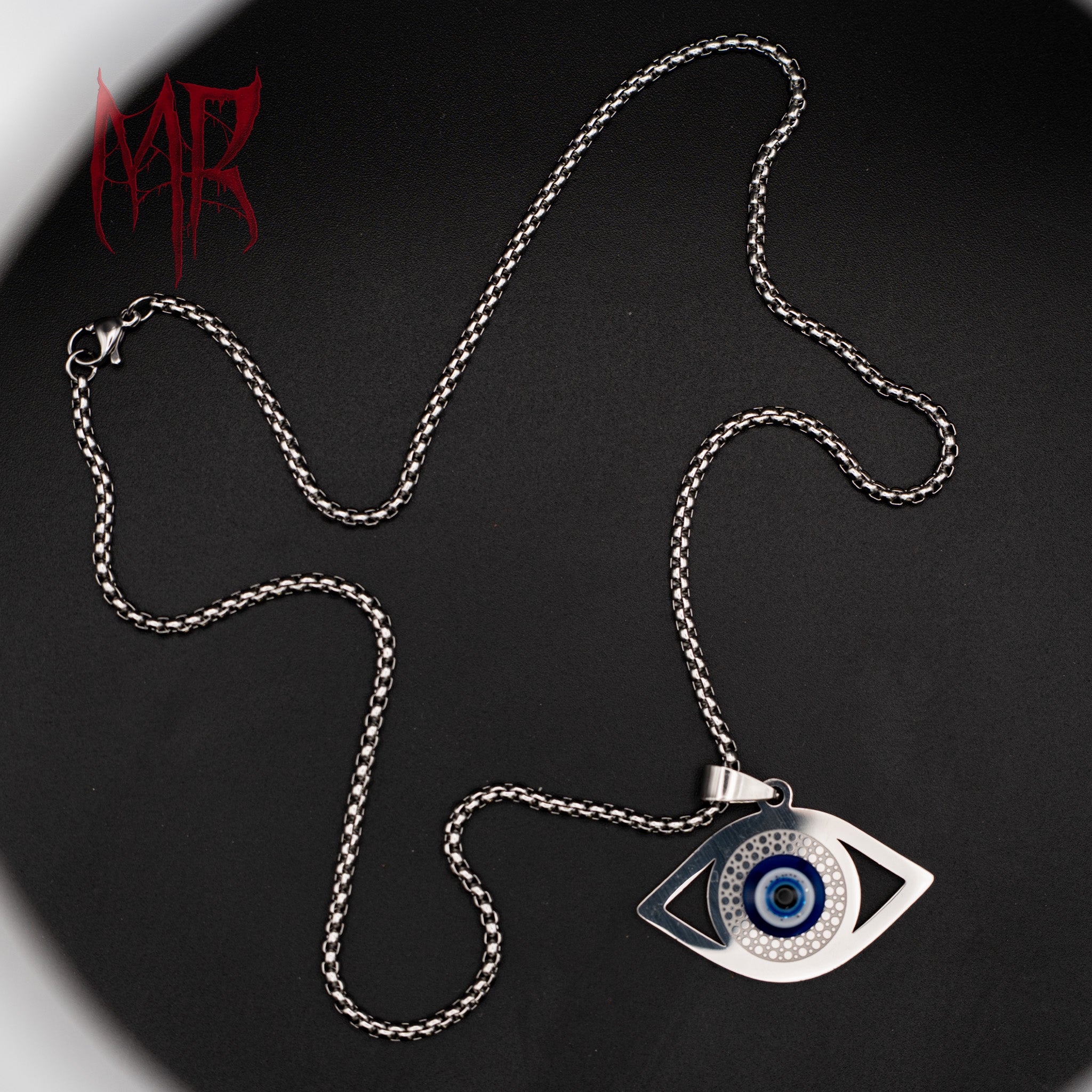 Keep a watchful gaze on the world with the Oracle Sight Necklace. This striking piece features a detailed Evil Eye pendant with a deep blue iris, suspended from a durable stainless steel box chain. Designed to ward off negative energy, it brings a protective and mystical edge to any fit.